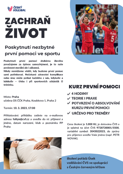 Úsek vzdělávání ČVS ve spolupráci s Českým červeným křížem pořádá školení první pomoci pro trenéry.