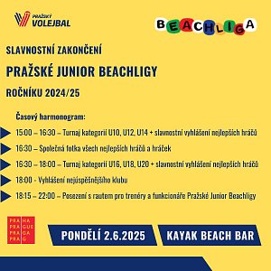 Srdečně vás zveme na Slavnostní zakončení Pražské Beachligy 2024/25, které se uskuteční v pondělí 2.6.2025 v Kayak Beach Baru.