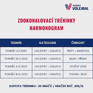 Pražský volejbalový svaz pořádá metodické zdokonalovací tréninky pro kategorie U14 (dívky + chlapci).